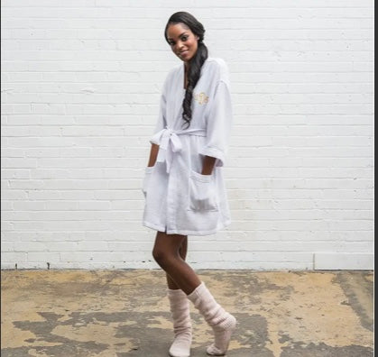 Women’s Waffle Knit Robe - White- No Monogram