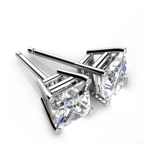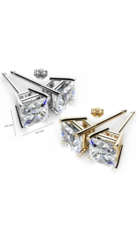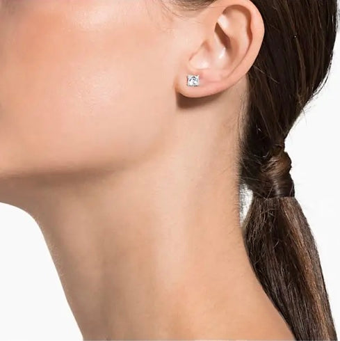 Swarovski Crystal Elements Square princess cut earrings in 14k white gold rhodium or 14k gold rhodium plating. Inspired by the Swarovski Attract stud earrings. High quality. 6mm x 6mm