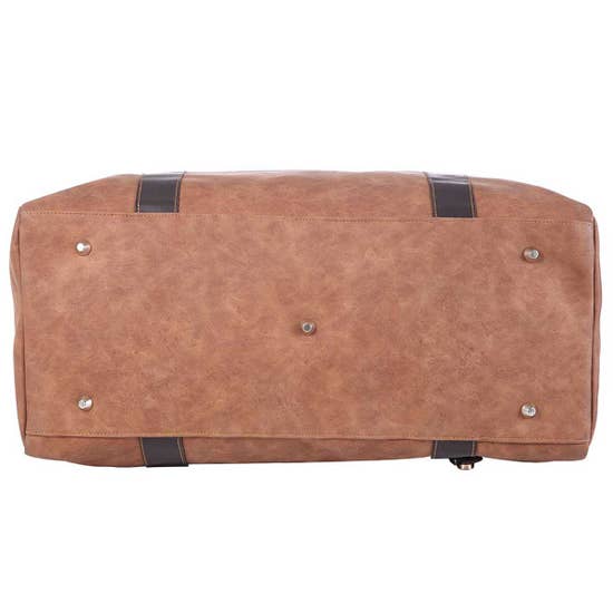 Distinctive Men's Oversized duffel bag mad from Distressed canvas and high quality leather. Clasp ends to reduce the size. Large distressed leather handles. Accented with distressed leather from top to bottom. Material: Faux Leather. Dimensions: 18 x 13 x 7.