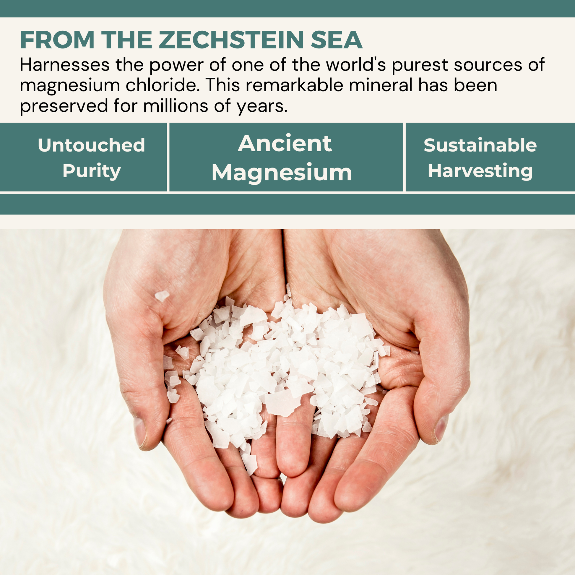 Transform your bath time into a luxurious spa experience with OsiMagnesium Bath Flakes with Eucalyptus Essential Oil. Our premium bath flakes are meticulously crafted from pure, natural magnesium chloride, harvested from the ancient 250 million year old Zechstein Seabed from a depth of 1600 meters. Infused with the invigorating essence of eucalyptus essential oil, this bath soak offers a multitude of benefits for both your body and mind. The calming properties of magnesium combined with the invigorating scent of eucalyptus create a tranquil environment, that is perfect for stress relief and mental clarity.