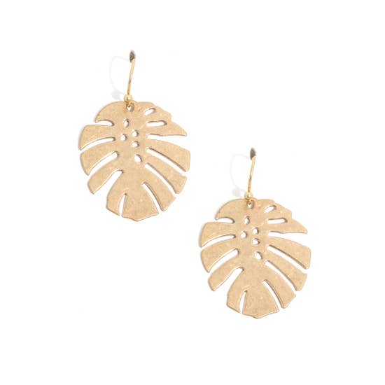 Metallic Monstera Leaf Hook Earrings - Gold