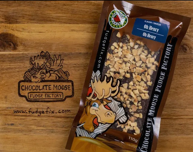 Indulge in the rich and creamy Oh Henry Fudge from Chocolate Moose Fudge Factory. Crafted with over 25 years of expertise, our fudge is known for its melt-in-your-mouth texture and addictive taste. Each 110g bar is made fresh to guarantee the best quality. The nut varieties can be stored for 3-4 months, while plain fudge bars last 6-8 months at room temperature. For longer shelf life, you can freeze them without altering the flavor or texture