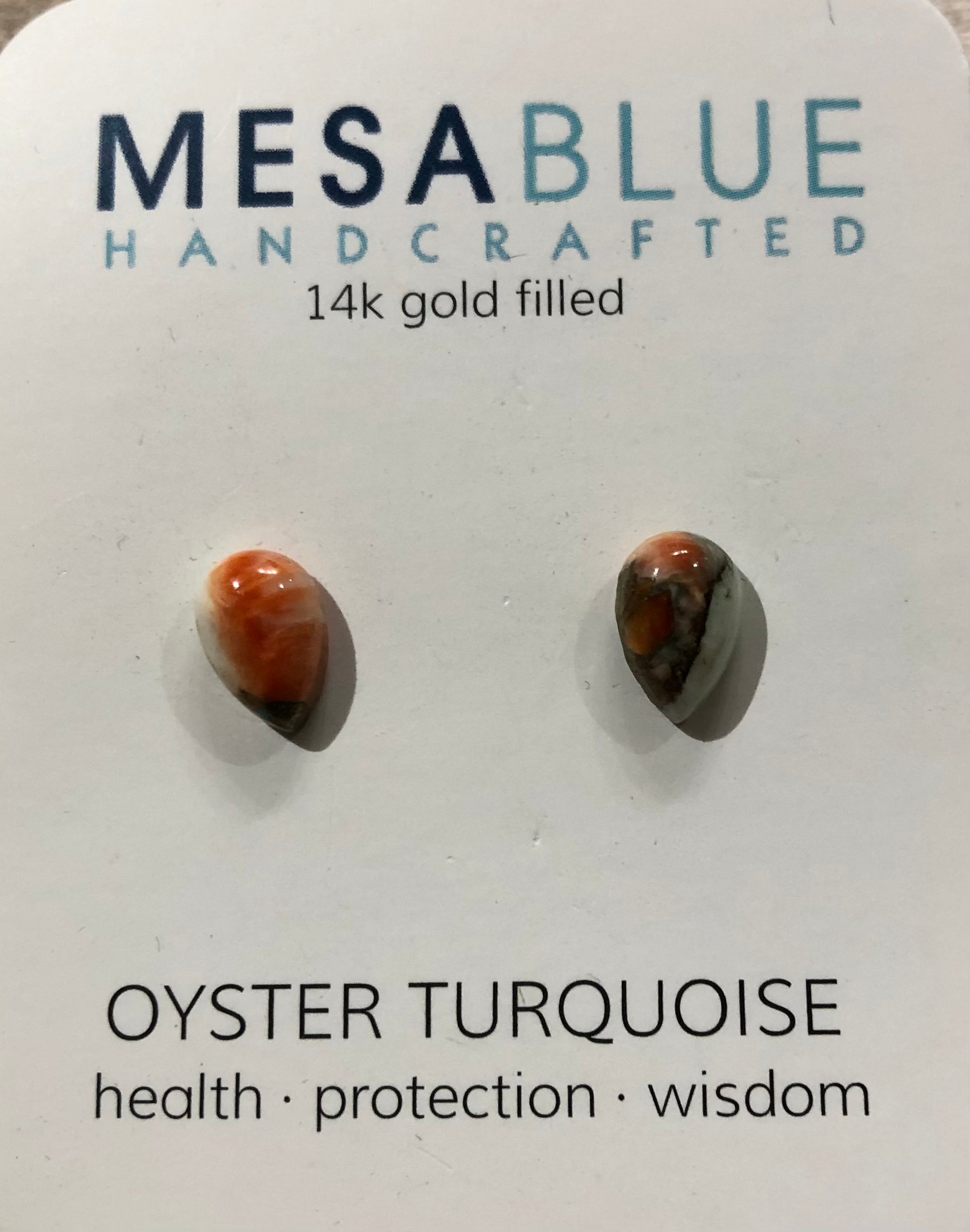 A pair of oyster turquoise stud earrings. Gold filled ear posts ::Approximately 7x10mm Due to the raw nature of the stones, every pair is unique, but they're all equally gorgeous.