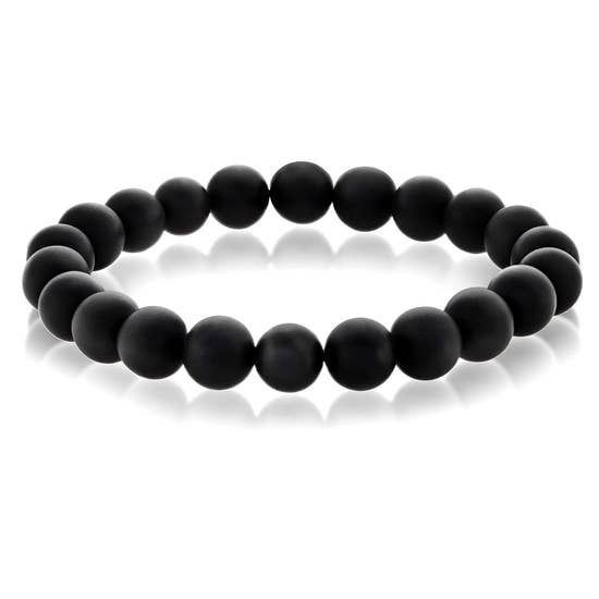 Polished Natural Stone Bead Stretch Bracelet - Matte Black Onyx