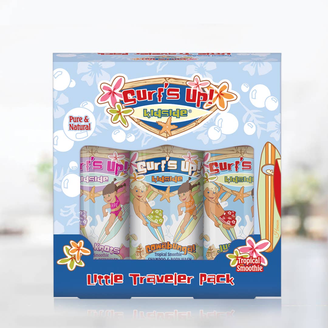 The Little Traveler Pack has everything you need to keep your little traveler squeaky clean from the top of the mop to sandy little toes. Eco-Friendly ingredients make clean up time gentle and safe.