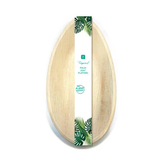 Pack of 4. Nothing quite like sharing food with friends and family. Pass around our Palm Leaf Platter at your BBQ or summer gathering. 100% biodegradable. The leaf is a natural by-product of the Areca Nut tree. Leaves are only collected once they have fallen, none are pulled from trees No chemicals, bleaching, glues, bonding agents, plastic or wax coating are used on the product. Naturally food safe Any excess leaf is gathered and used as fertilizer to put back into the ground Size: 12".