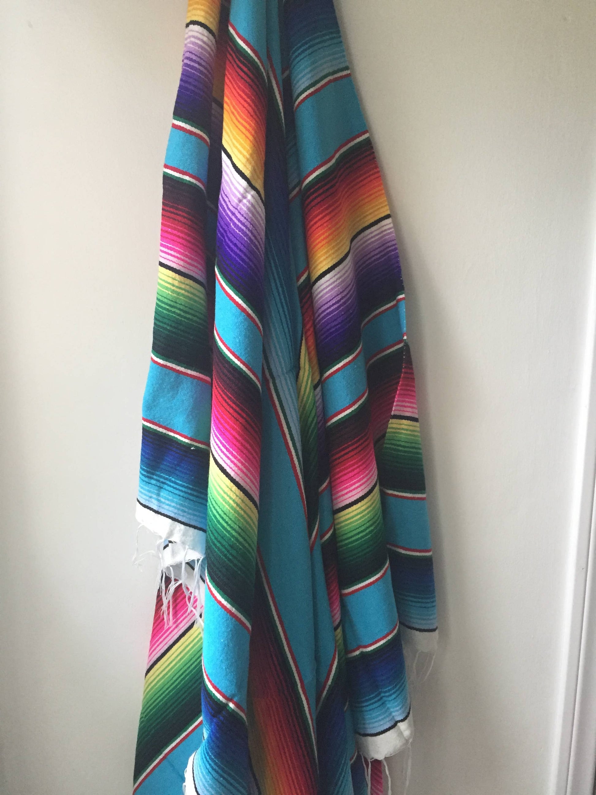 This vibrant Turquoise blanket is a the perfect companion for wherever your next adventure takes you!. It's lightweight and perfect for the beach, concerts, festivals, the park, camping or as a beautiful accent piece for your home. Measures 5'x7' and made of 100% acrylic. Cold or Hand Wash and Air Dry Recommended.