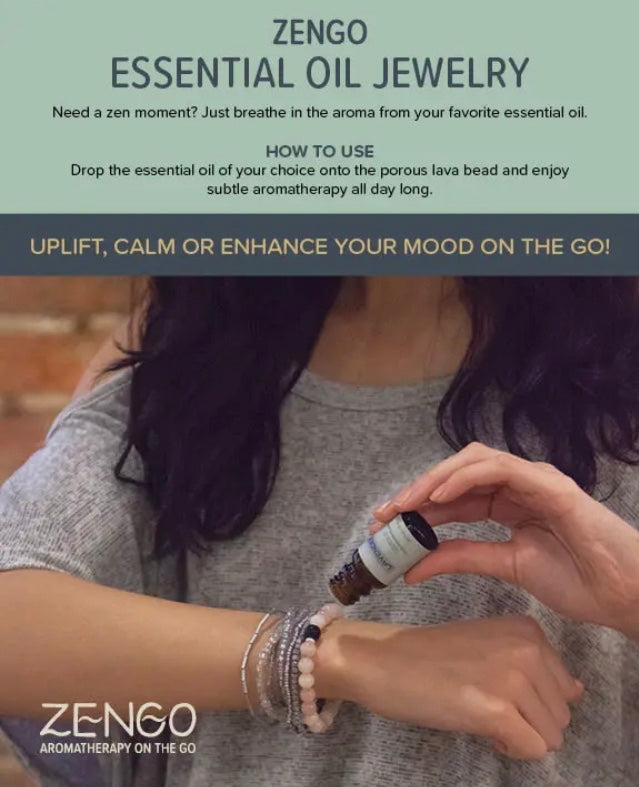A beautiful bracelet that stretches to slide on and off the wrist effortlessly. Therapeutic jewelry that combines the healing properties of gemstones with essential oils. Crafted with the most beloved oils, this bright blend conjures feelings of joy, creativity and rejuvenates the spirit with its combination of Lime, Spearmint, Grapefruit and Sweet Orange. How to use: simply drop the essential oil of your choice onto the porous lava bead and enjoy subtle aromatherapy all day long!